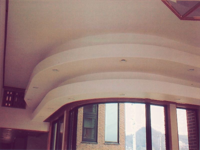 R型のカーテン/照明ボックスです