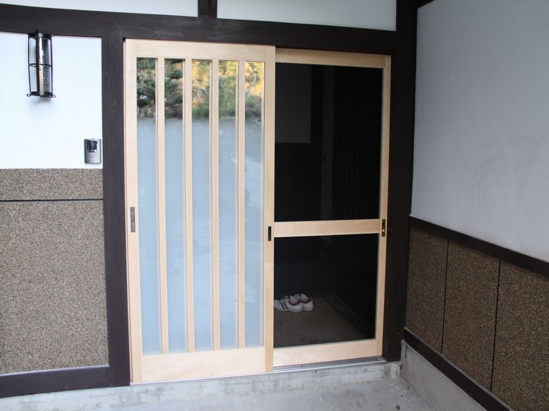ぼかしガラス入りの玄関